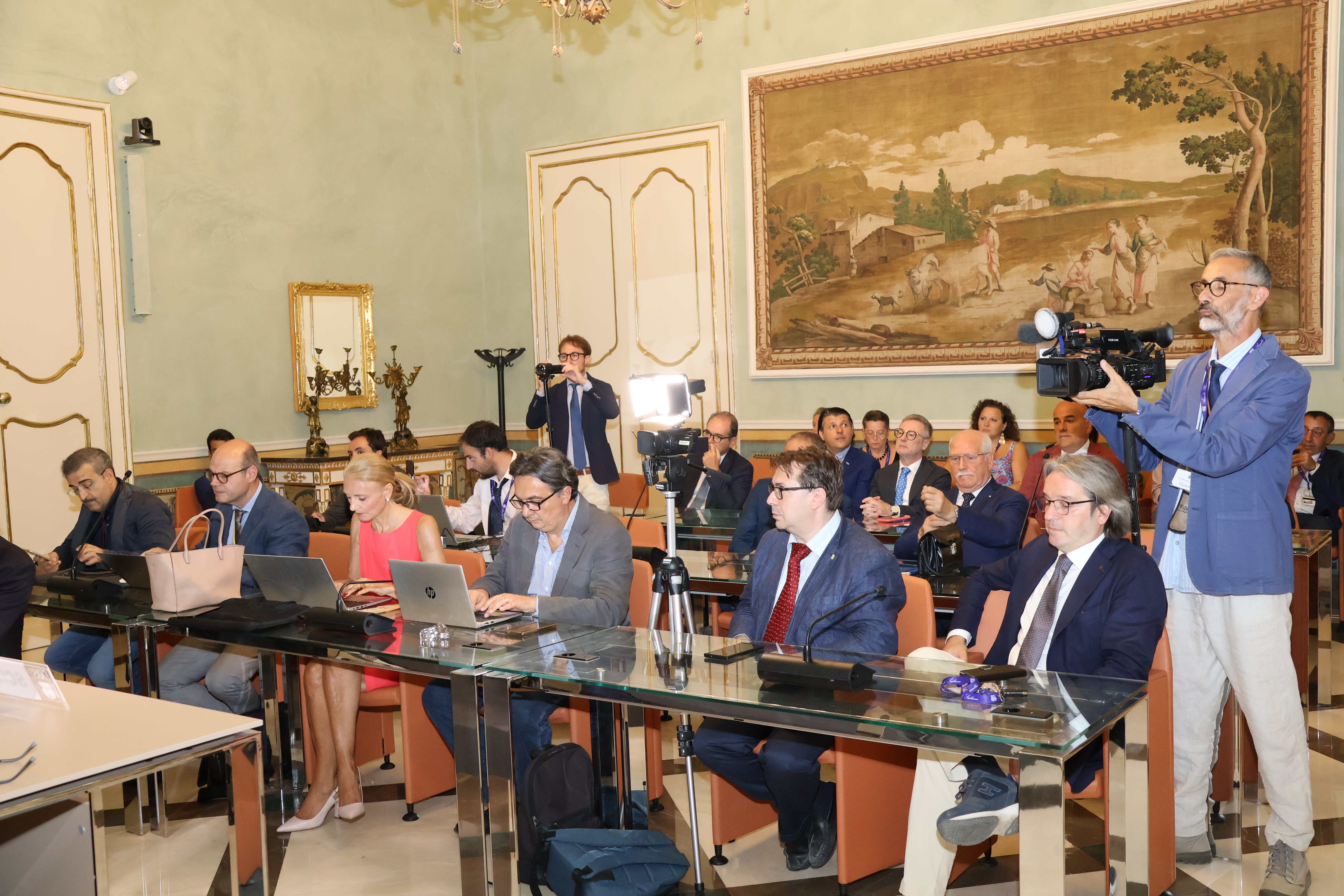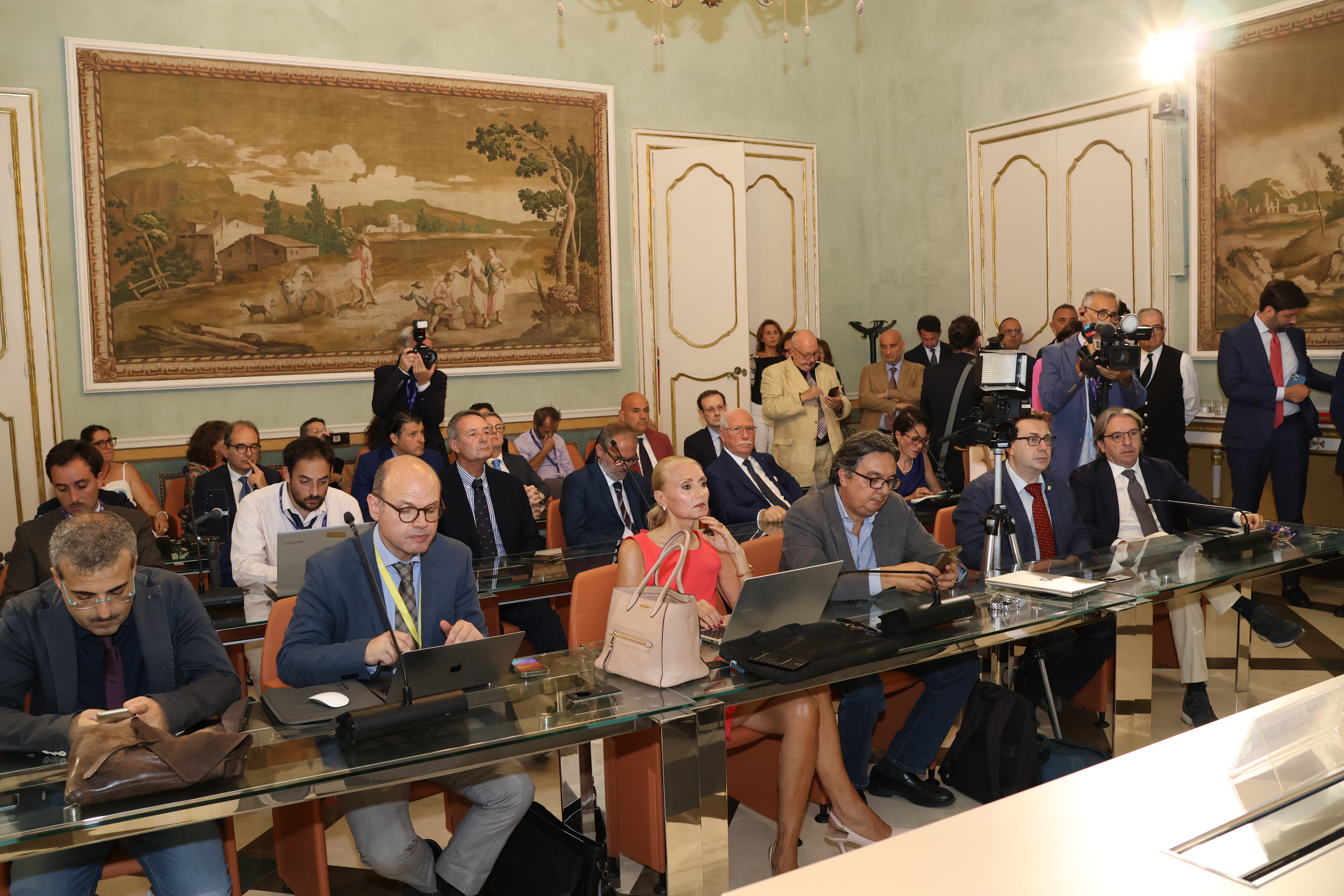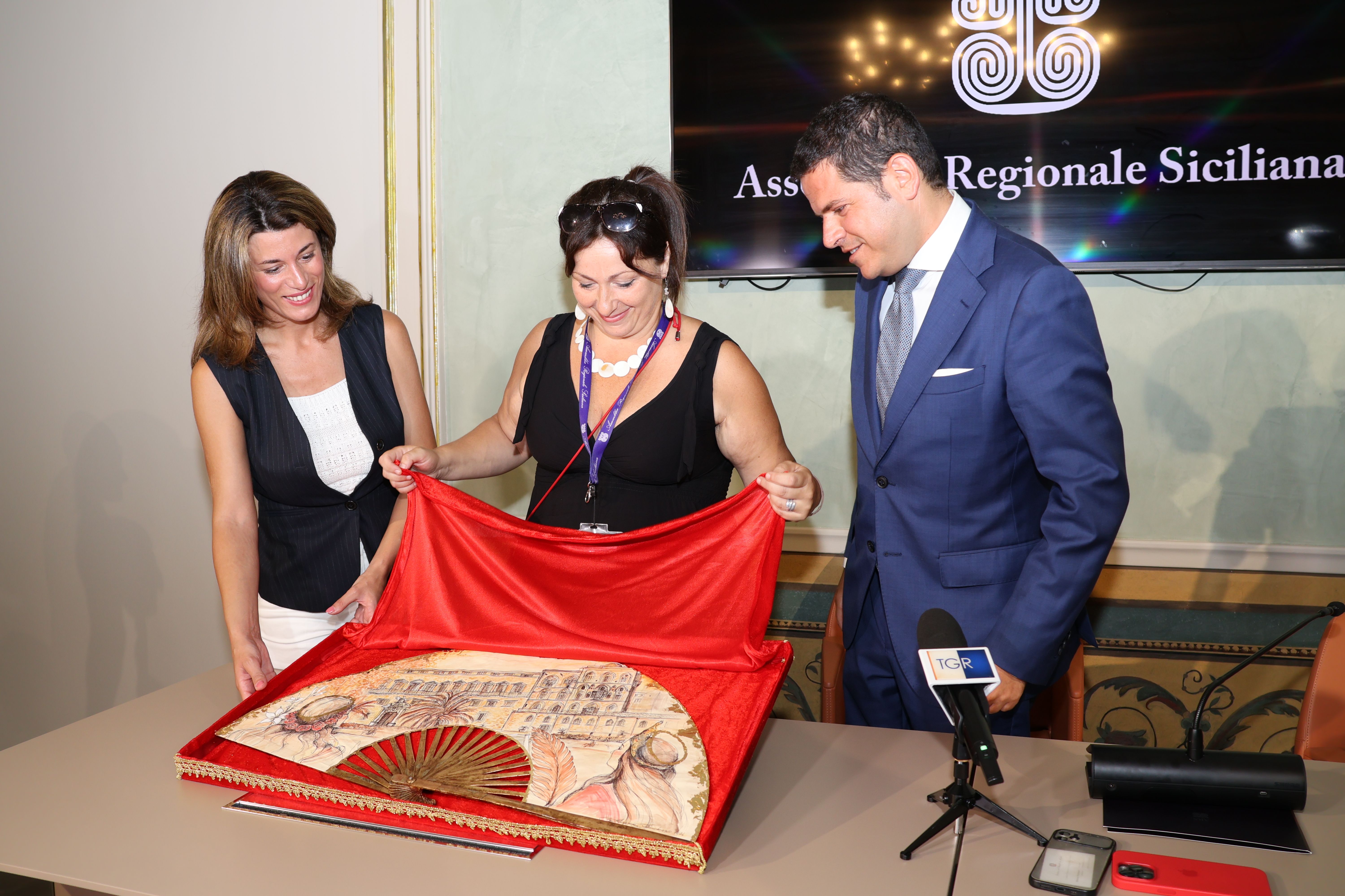 Si è svolta nella sala stampa Mario Palumbo di Palazzo Reale, la consueta cerimonia del ventaglio. Il Presidente dell’Ars Gaetano Galvagno, accompagnato dal Segretario generale, Fabrizio Scimè, ha descritto l’attività svolta dal Parlamento siciliano in questi primi 18 mesi. Alfredo Pecoraro, presidente della stampa parlamentare, ha consegnato a Galvagno un esclusivo ventaglio realizzato dall’artista Rosaria Randazzo.