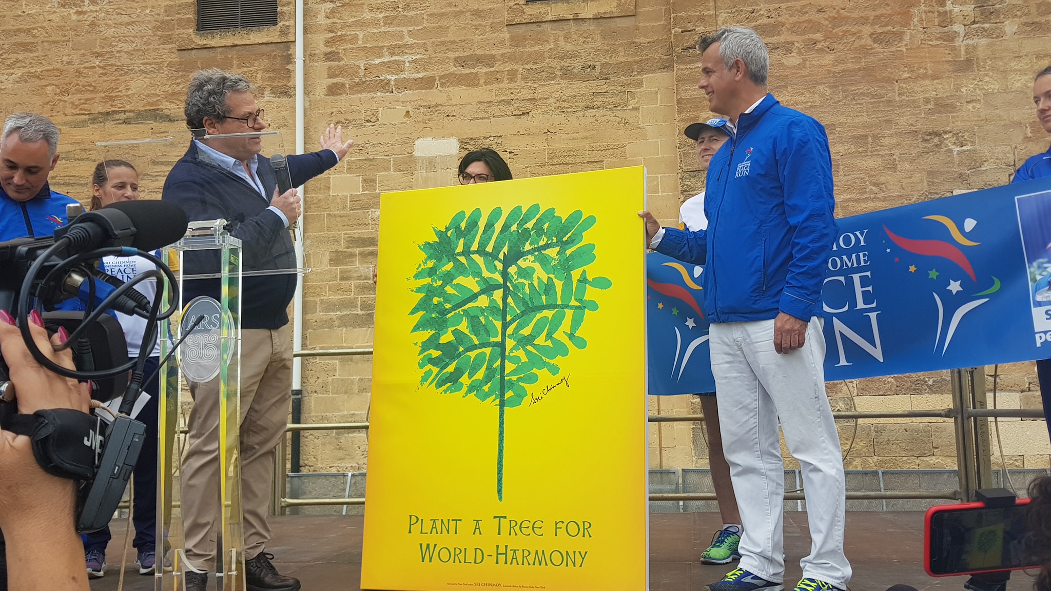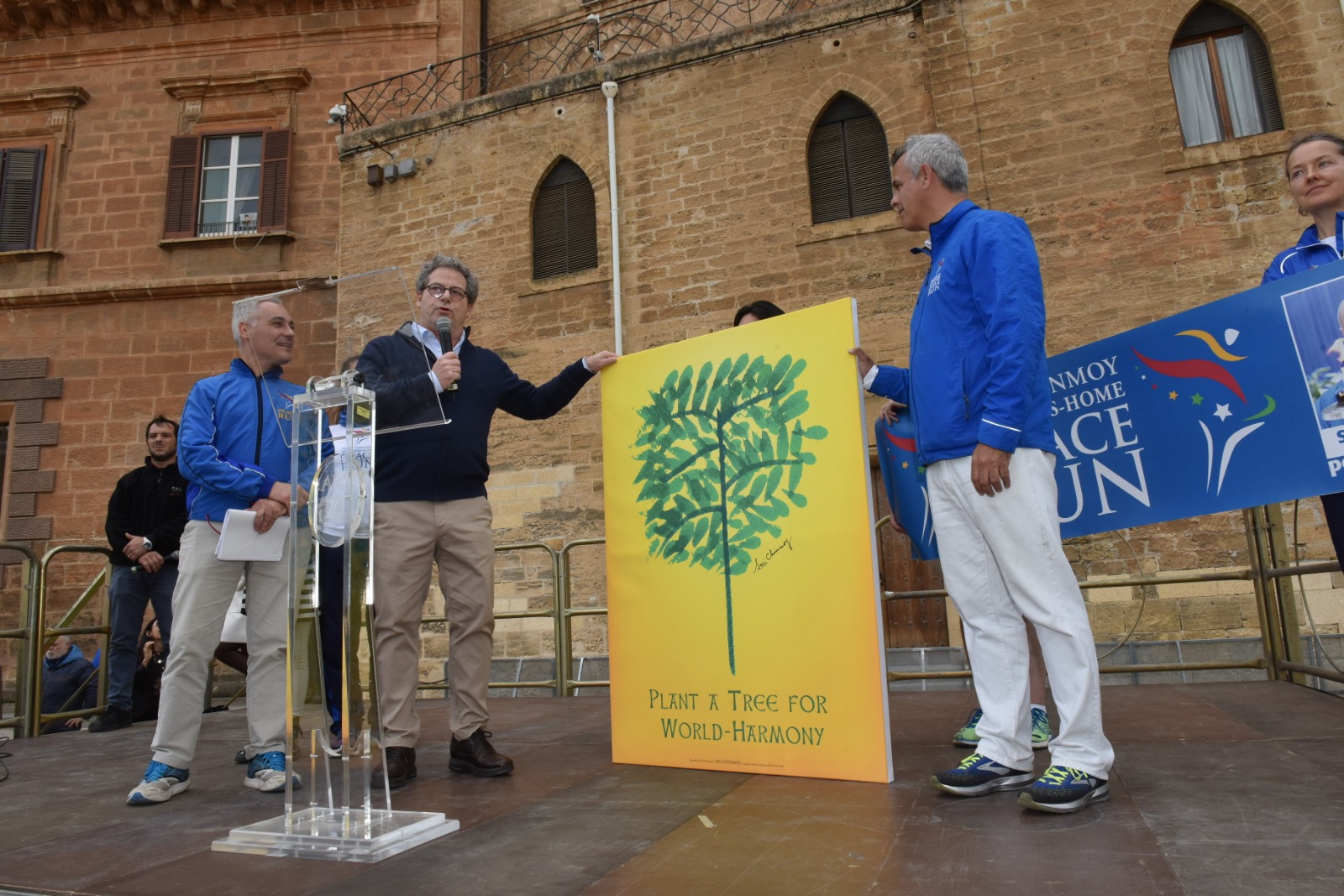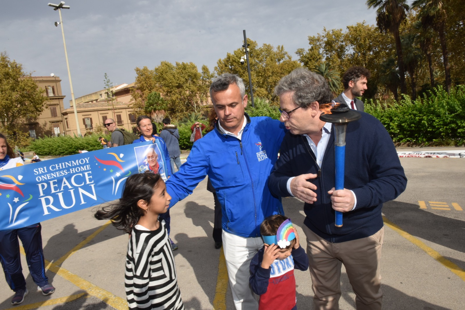 I bambini della Peace Run consegneranno al presidente Miccichè la fiaccola della pace, che è stata tra le mani dei più importanti leader del mondo, come Nelson Mandela, e gli doneranno il quadro di Sri Chinmoy “Plant a tree for World Harmony”.