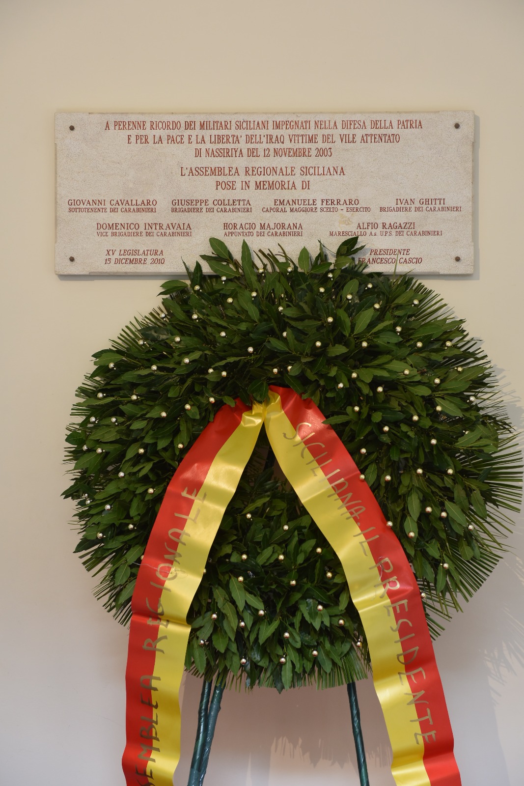 “Altissimo fu il tributo di sangue pagato dalla Sicilia che vide il sacrificio di sette suoi figli – ha aggiunto Miccichè -. Il 12 novembre 2003 in Iraq persero la vita Giovanni Cavallaro, sottotenente, originario di Messina; Alfio Ragazzi, maresciallo aiutante di Messina; Giuseppe Coletta, brigadiere di Avola; Ivan Ghitti, brigadiere di San Fratello; Domenico Intravaia, vice brigadiere di Palermo; Horacio Majorana carabiniere scelto, di Catania; Emanuele Ferraro, caporal maggiore scelto di Carlentini”.