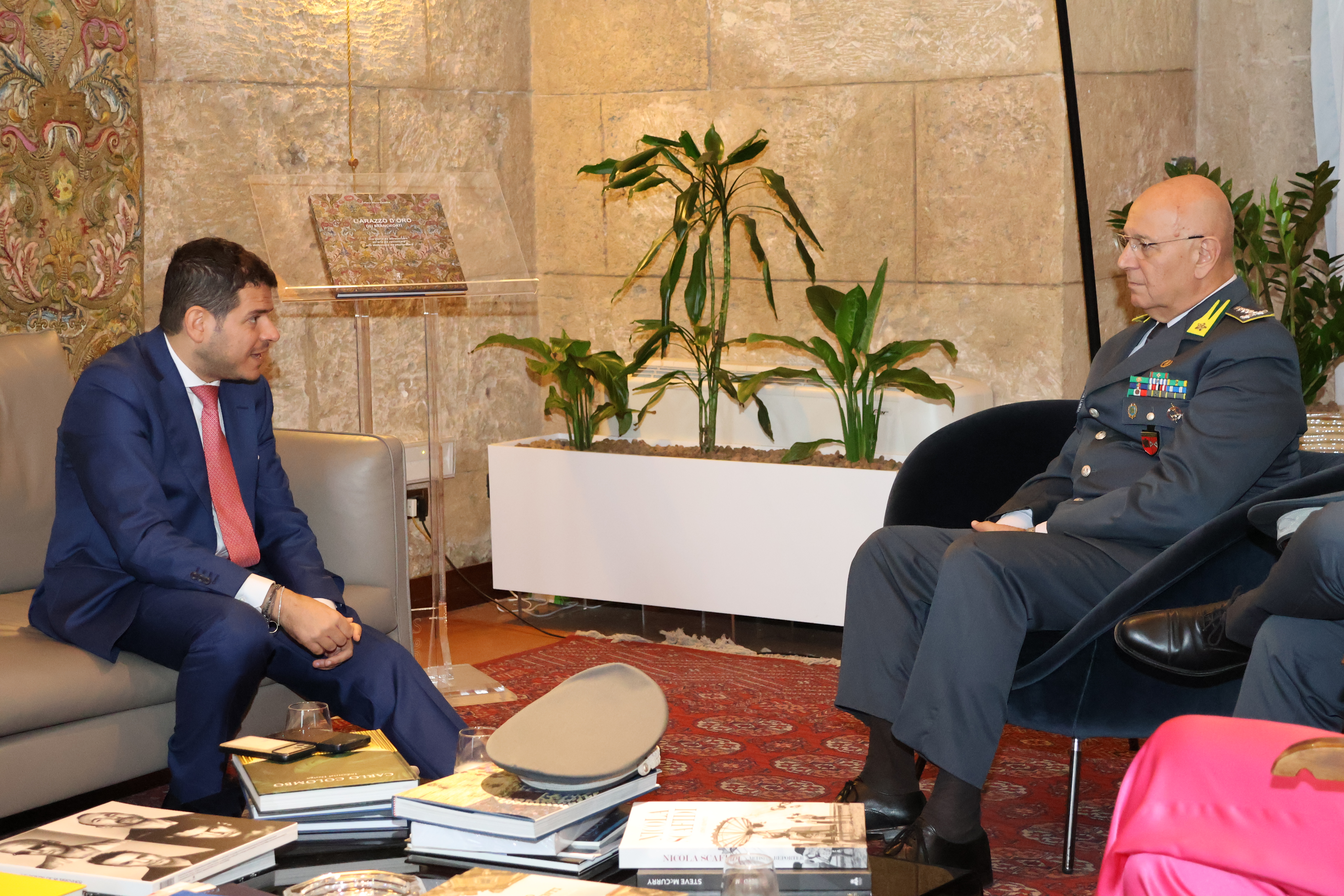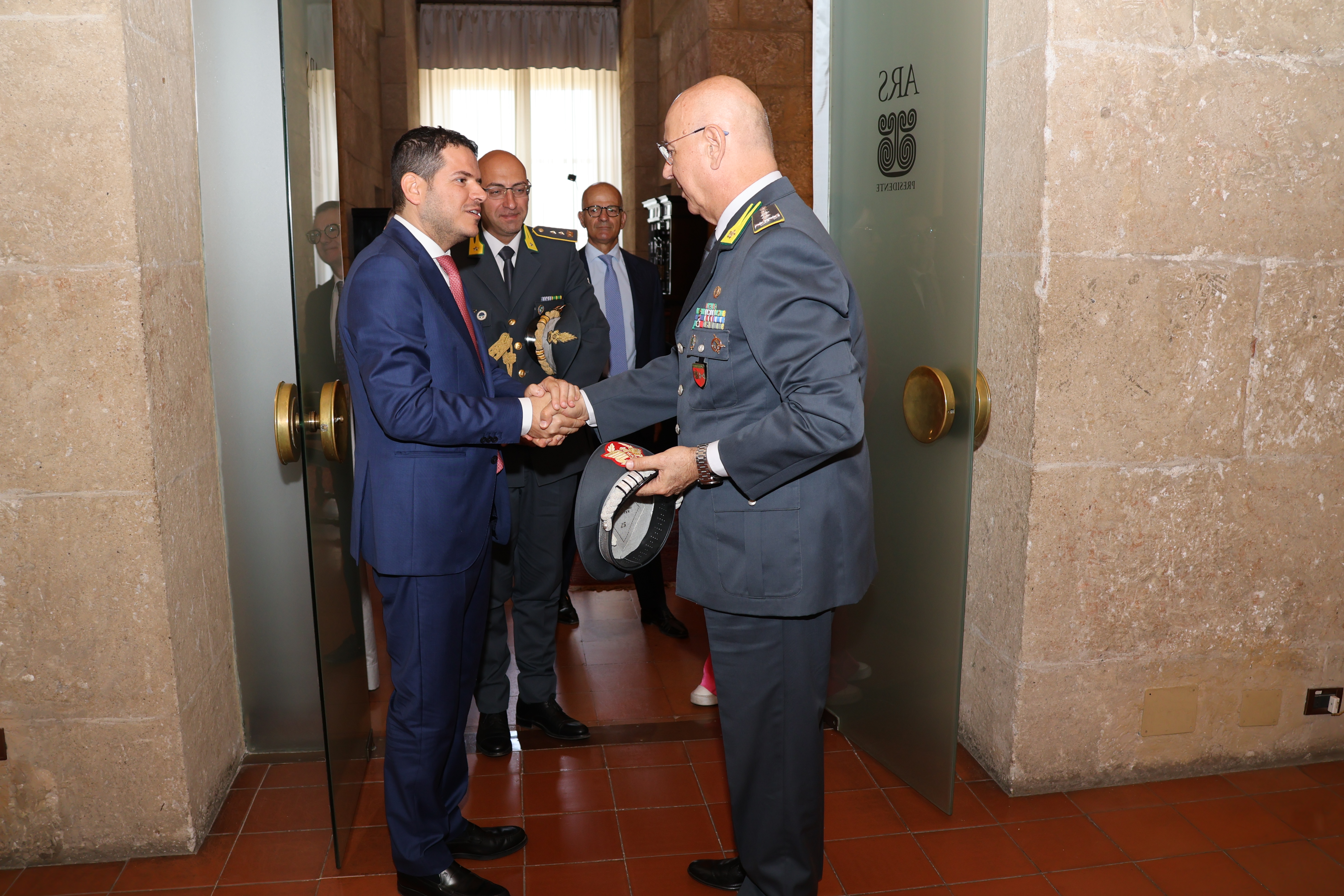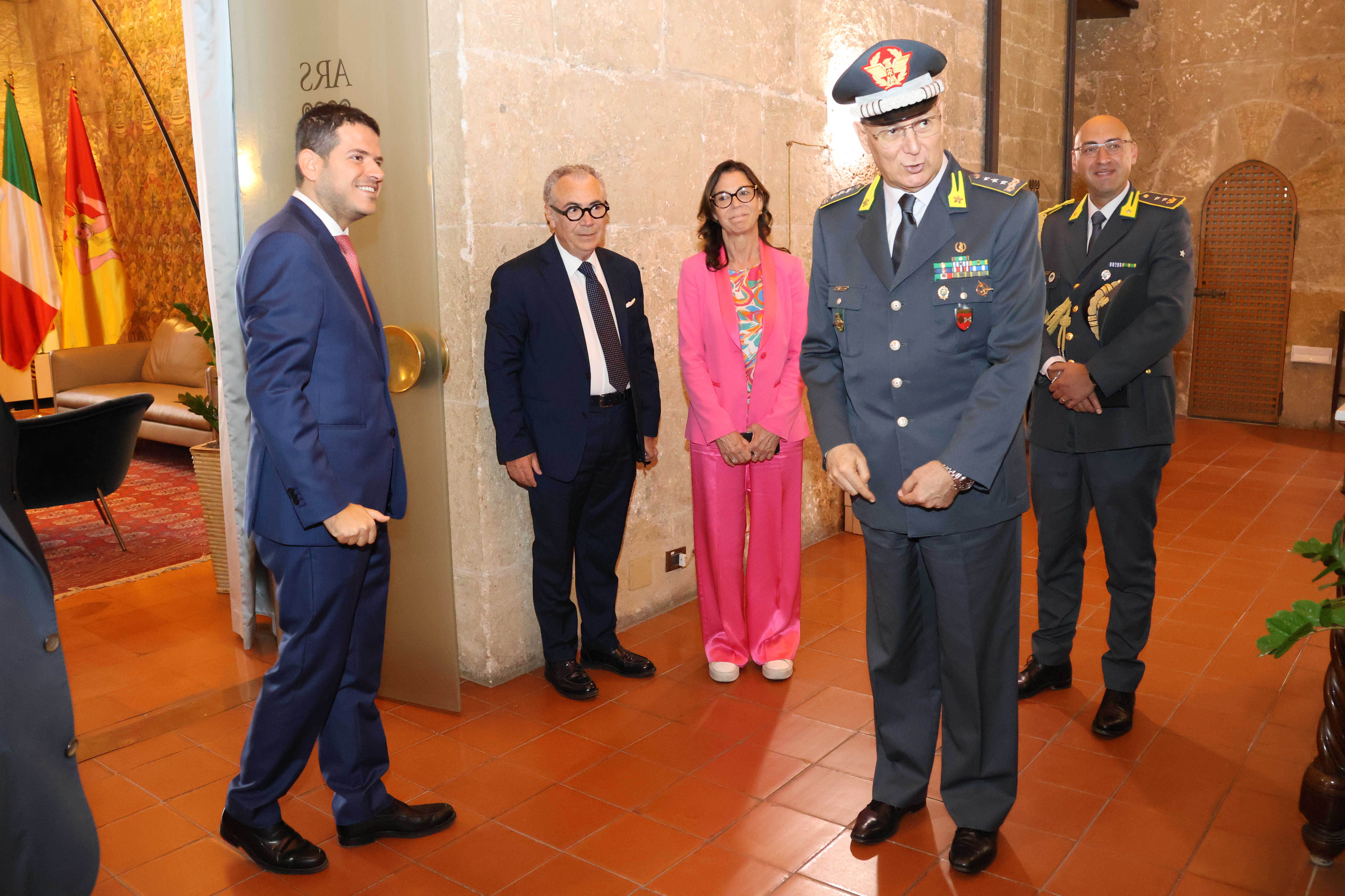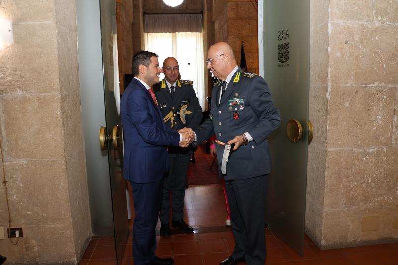 ll Presidente dell’Assemblea regionale siciliana, Gaetano Galvagno, ha ricevuto la visita di commiato del Comandante Interregionale dell'Italia Sud-Occidentale della Guardia di Finanza, Gen. C. A. Rosario Lorusso. Nell’incontro, che si è svolto presso la Torre Pisana di Palazzo Reale, erano presenti il Segretario generale, Fabrizio Scimè, il Capo di gabinetto, Filippo Palmeri ed il Capo del Cerimoniale, Patrizia Perino.