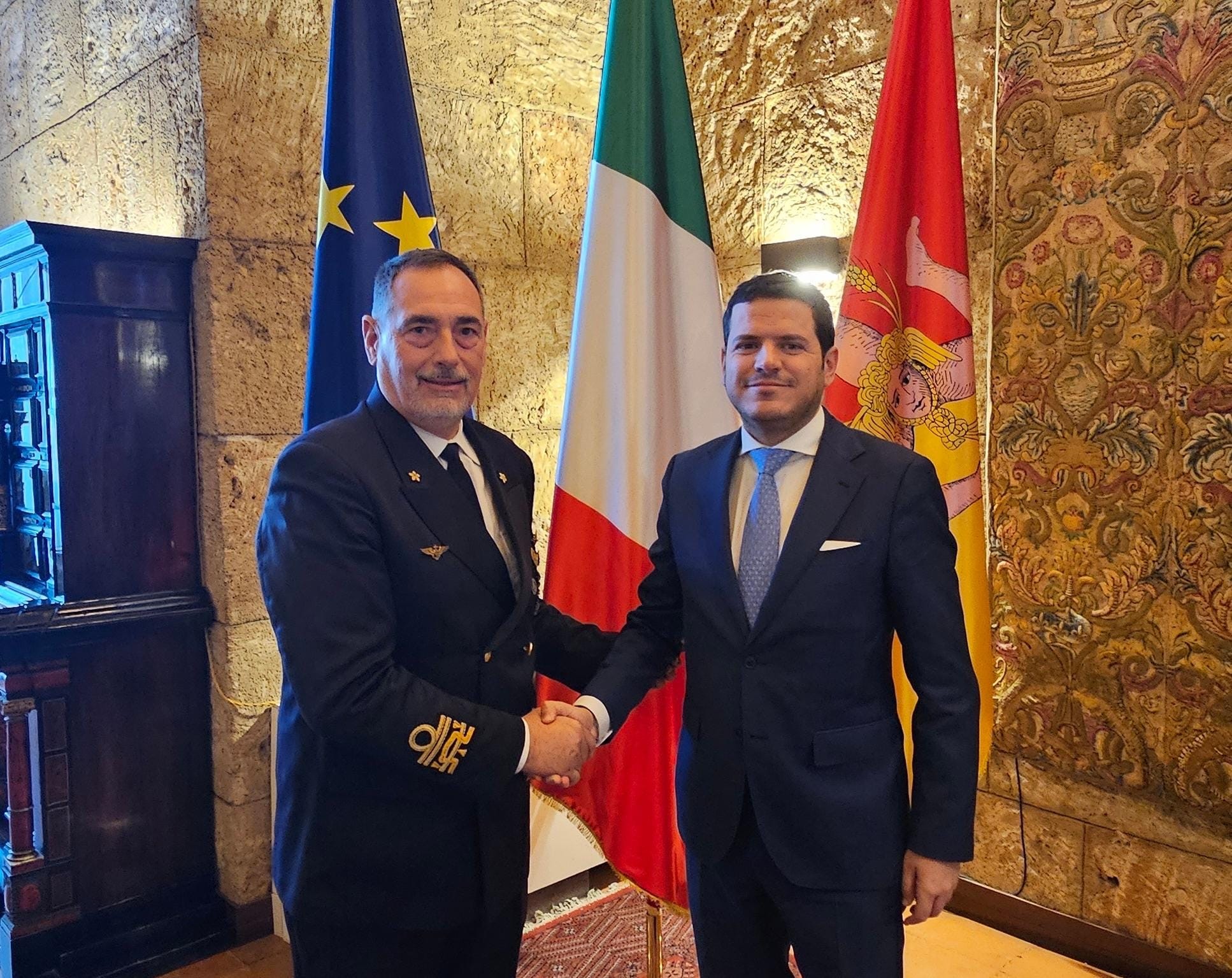 Il Presidente dell’Assemblea regionale siciliana, on. Gaetano Galvagno, ha ricevuto stamani nella Torre Pisana del Palazzo reale di Palermo l’ammiraglio di divisione Lorenzano Di Renzo che assumerà, già nei prossimi giorni, il Comando Marittimo Sicilia – Marina militare rilevando la guida dell’ammiraglio di divisione Andrea Cottini che andrà in congedo per raggiunti limiti di età.