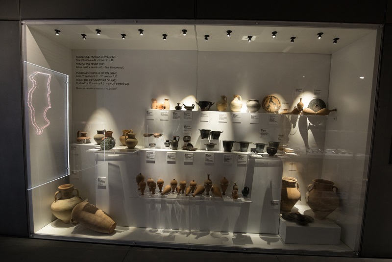 In particolare è presente l’intero corredo funerario di una delle tombe della necropoli punica, rinvenuto a Palermo durante gli scavi del 1953.