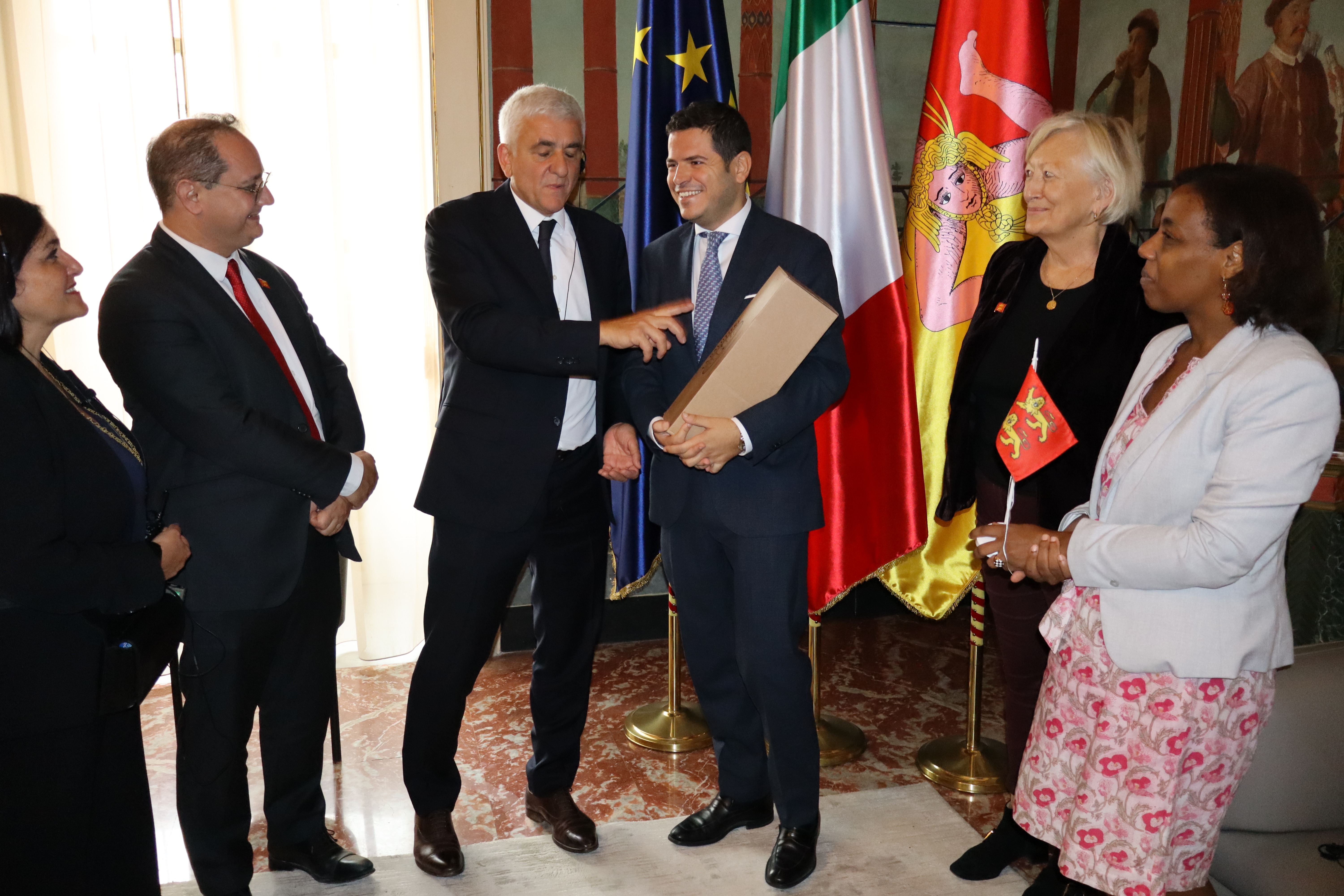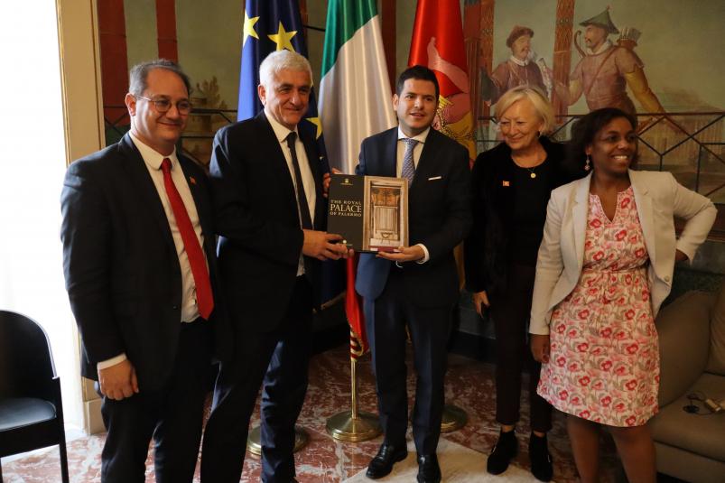 Il presidente Gaetano Galvagno ha accolto a Palazzo dei Normanni una delegazione della Regione Normandia con a capo il Presidente Hervé Morin. All’incontro che si è tenuto nella sala cinese hanno partecipato il Segretario Generale, dott. Fabrizio Scimè ed il Capo di Gabinetto, dott. Filippo Palmeri.