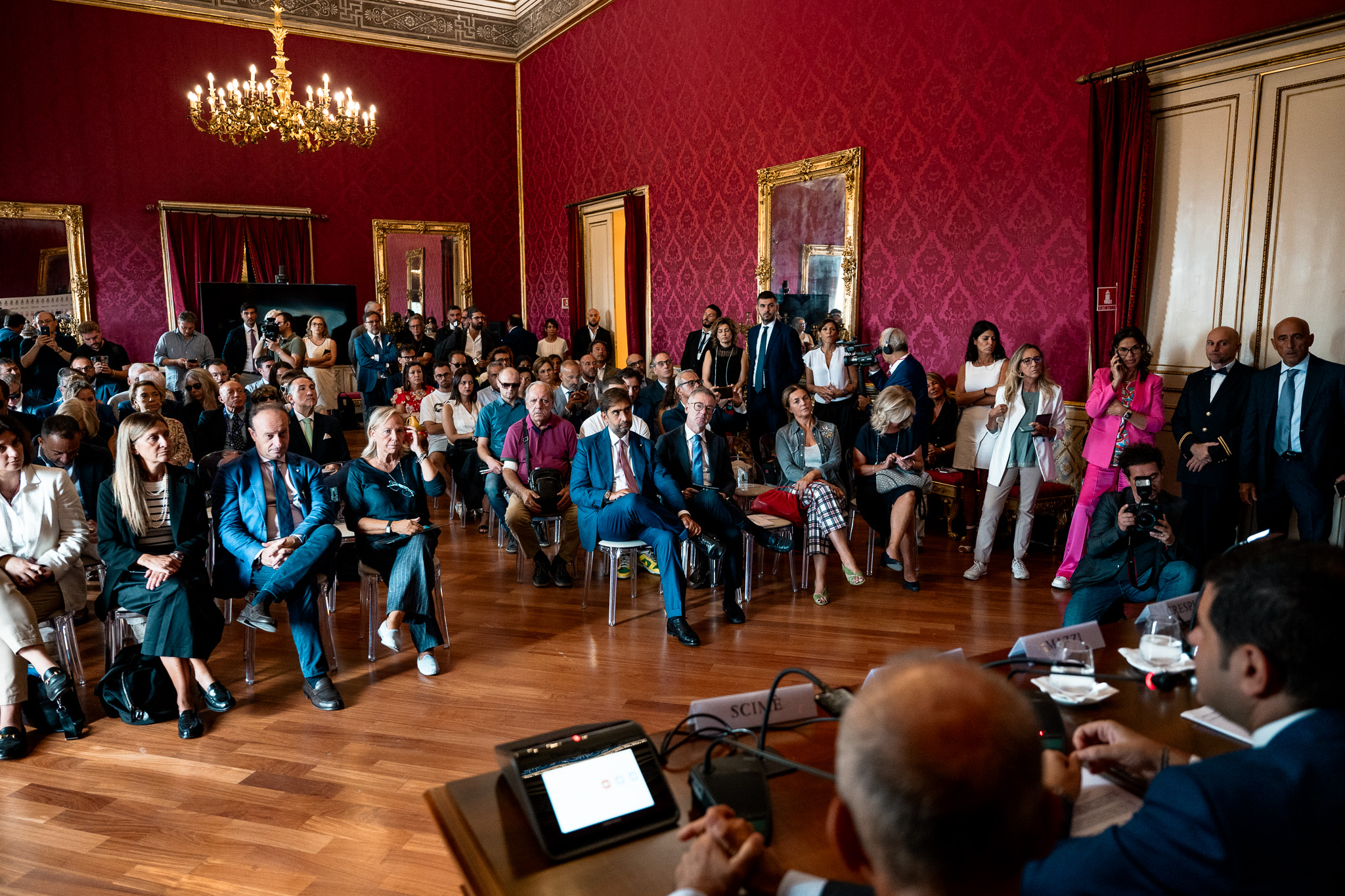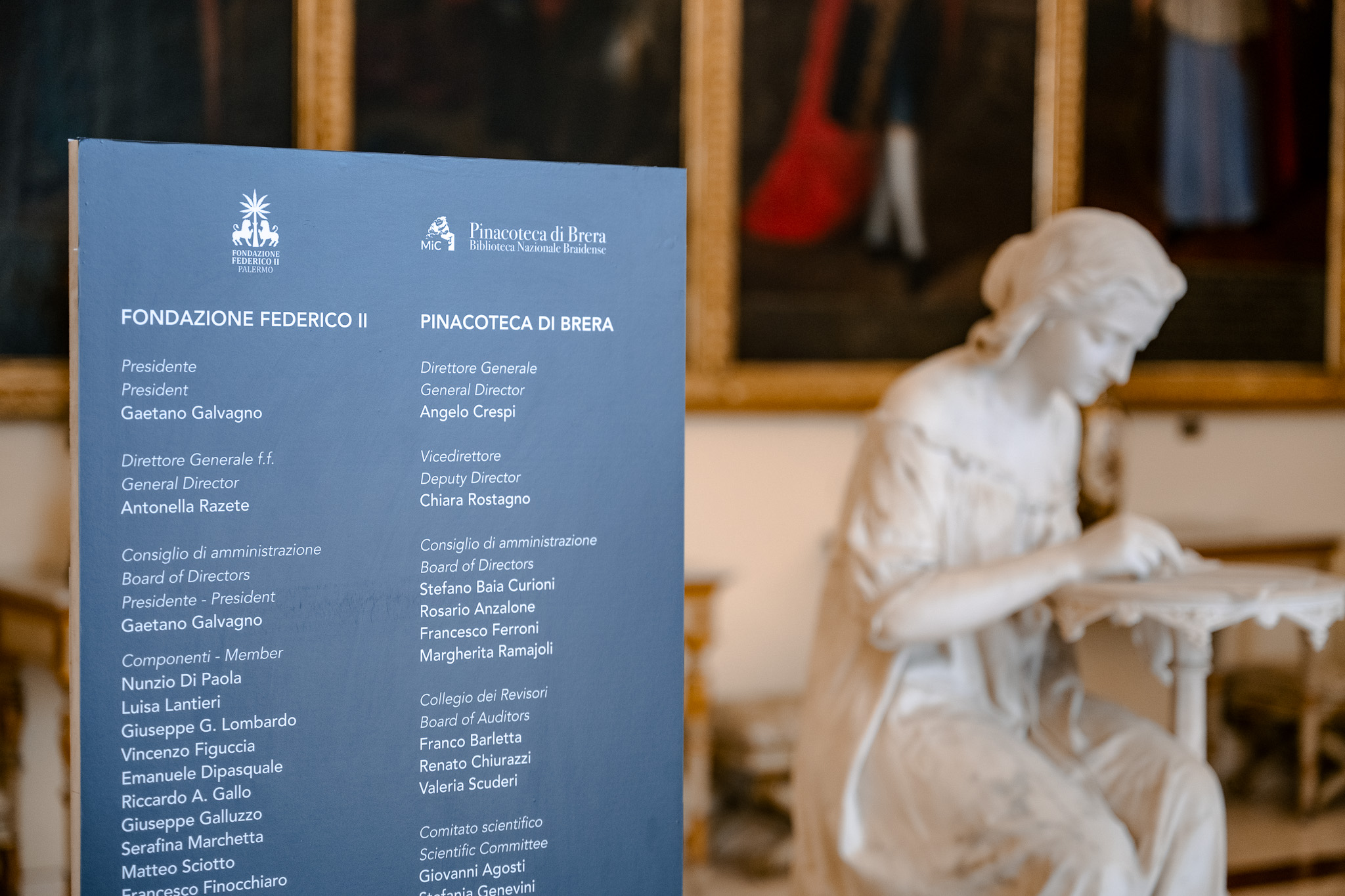 Presentata ed inaugurata “la grande Brera al Palazzo Reale di Palermo – la seduzione del classico”. È stato il Presidente dell’Ars e della Fondazione Federico II, Gaetano Galvagno, ad illustrare la collaborazione tra Fondazione Federico II e Pinacoteca di Brera, grazie alla quale sarà possibile ammirare alcuni capolavori scultorei di Canova, Pandiani, Magni e Spertini. È la prima volta dopo 122 anni, che le opere si spostano da Milano. Alla conferenza stampa, oltre al Presidente Galvagno, hanno presenziato, il Direttore della Pinacoteca di Brera, Angelo Crespi, il Sottosegretario di Stato al Ministero della Cultura, Gianmarco Mazzi ed il Segretario generale dell’Ars Fabrizio Scimè. Le sculture rimarranno esposte negli appartamenti reali fino al mese di novembre. Una riproduzione in 3D della “Vestale” di Canova consente la fruizione anche ai non vedenti.