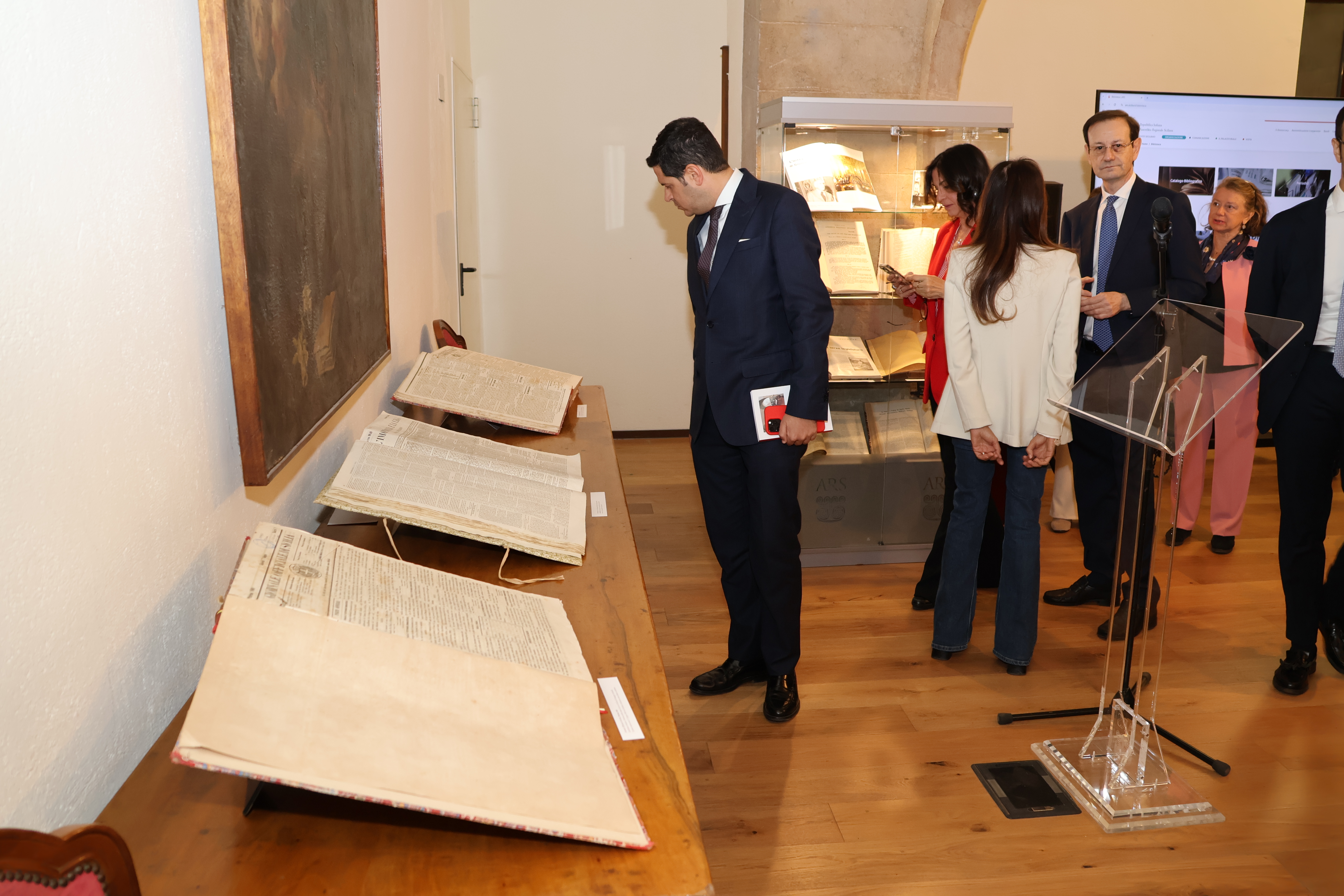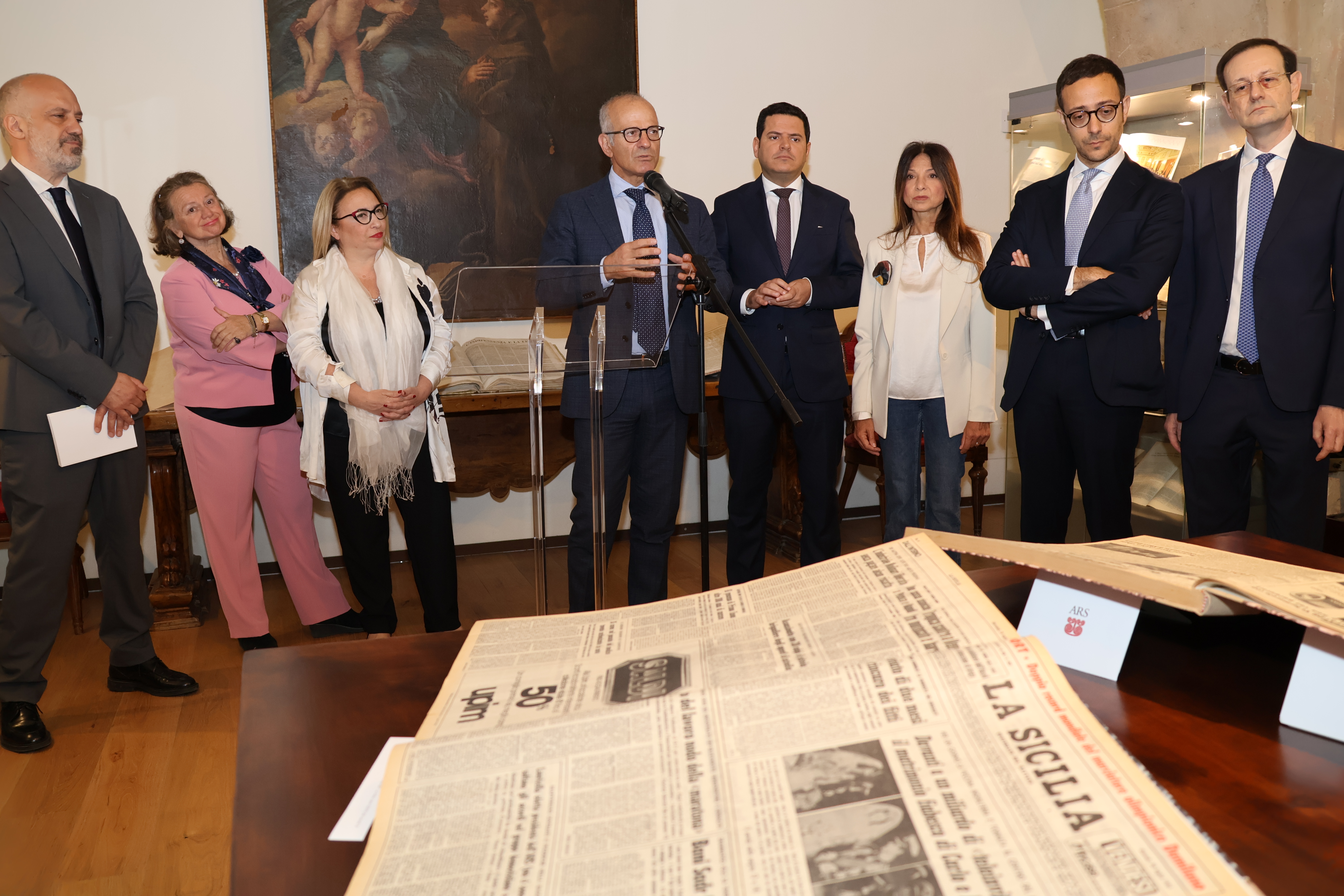 Per l’occasione sono stati esposti alcuni dei più importanti e antichi giornali conservati presso l’emeroteca dell’Ars, dal primo numero del Giornale di Sicilia, ma anche diverse pagine tratte dalla rivista Cronache Parlamentari Siciliane.
