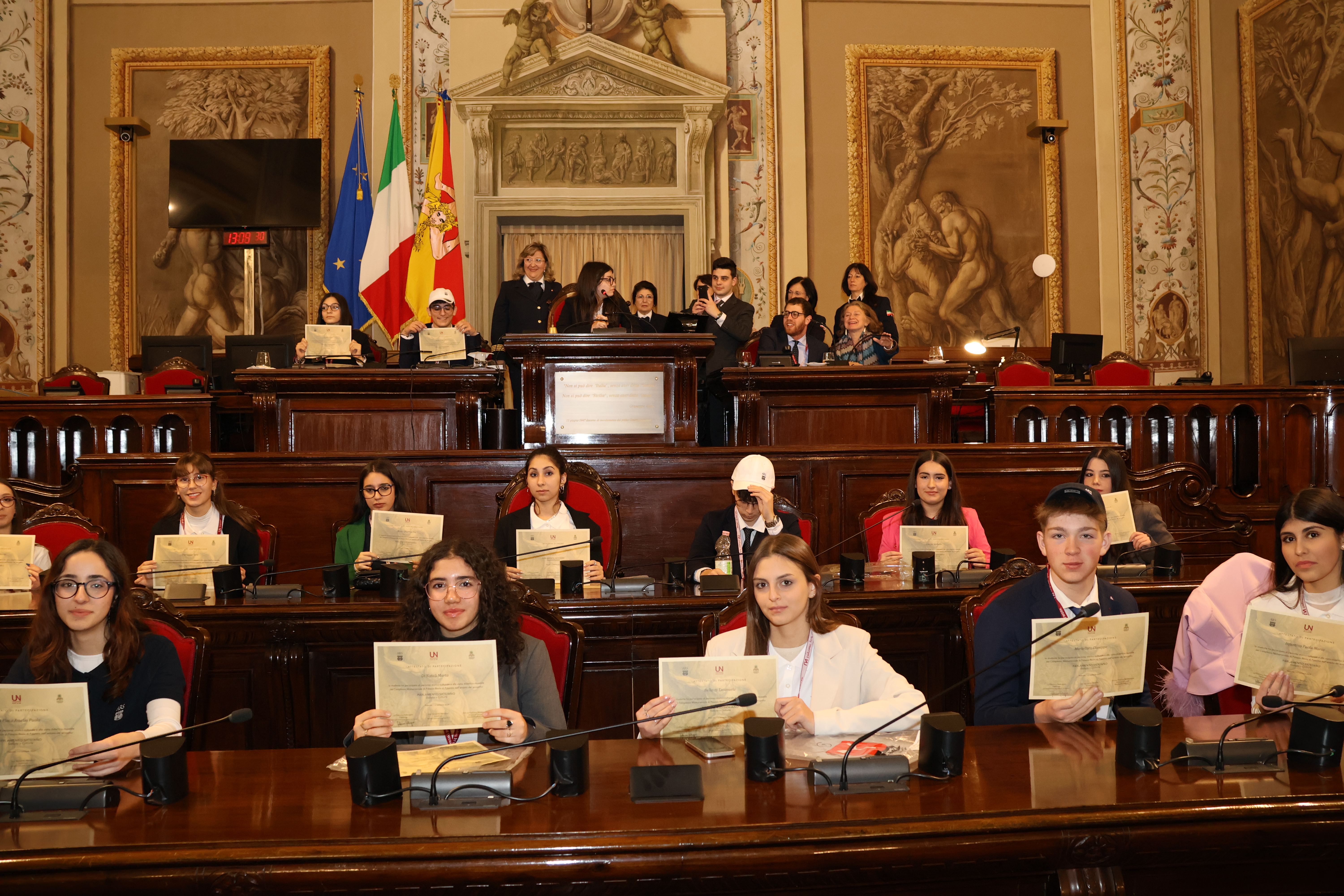 Sala d’Ercole ha ospitato la prima edizione di “Parlamento siciliano – statuto e cultura”. Il progetto, fortemente voluto dal presidente dell’Ars Gaetano Galvagno, indirizzato ai ragazzi degli istituti superiori, punta a far conoscere il funzionamento e le particolarità del Parlamento più antico d’Europa. Grazie alla collaborazione della United Network, specializzata in progetti di didattica innovativa, Palazzo dei Normanni ha ospitato 78 giovani provenienti dai licei di Caltanissetta e Bivona che, con il supporto di funzionari e assistenti, hanno simulato lavori parlamentari.