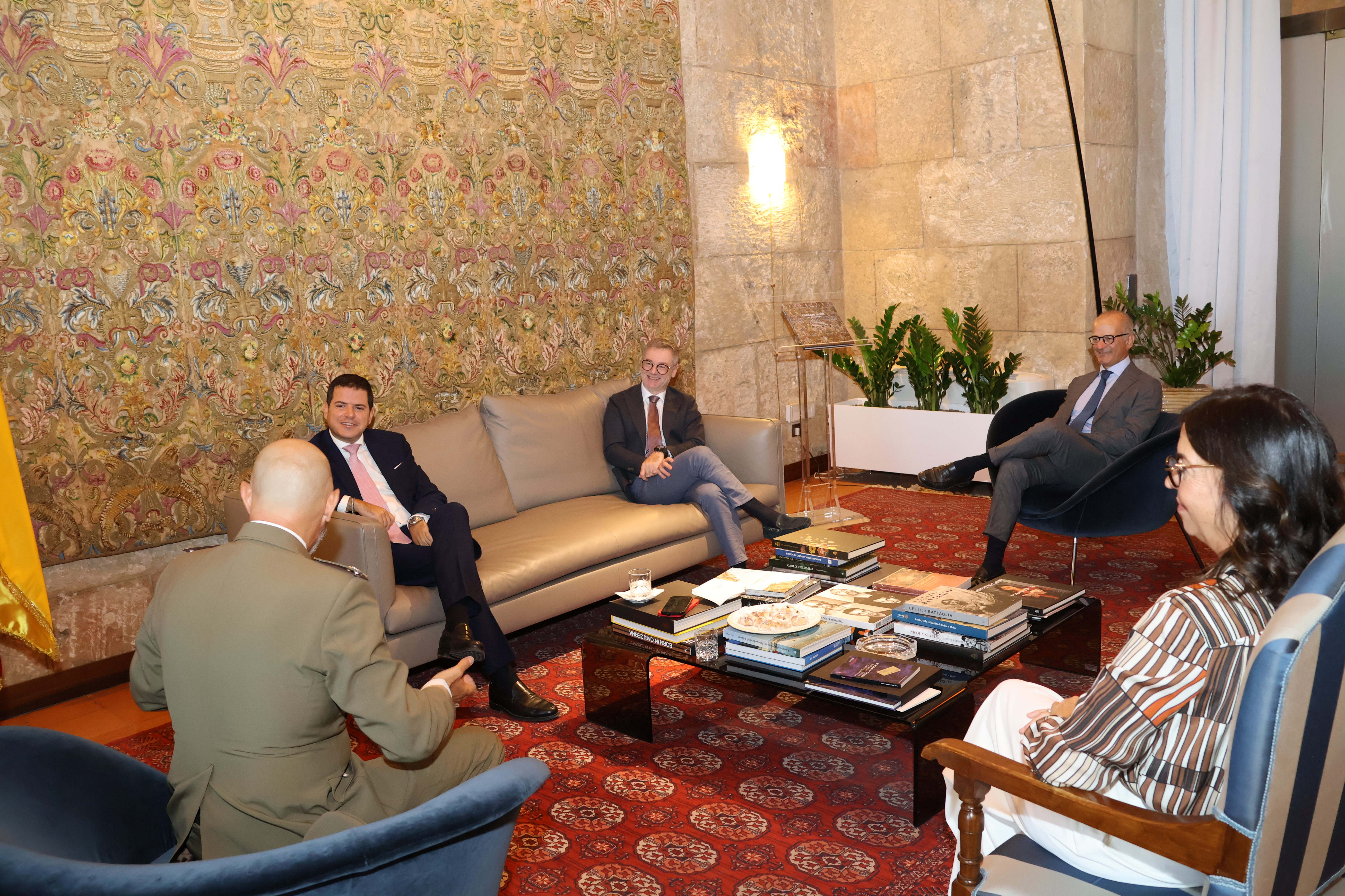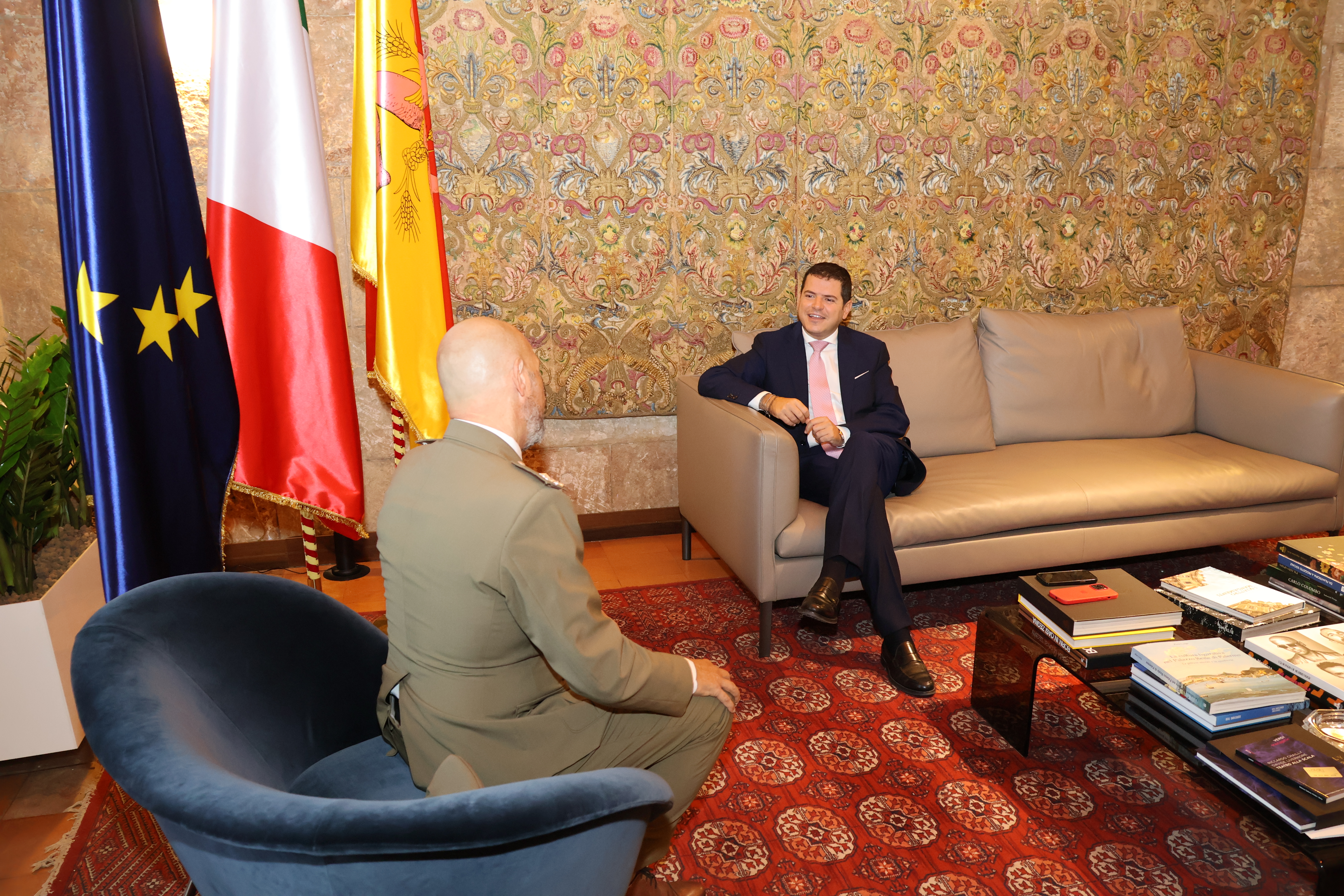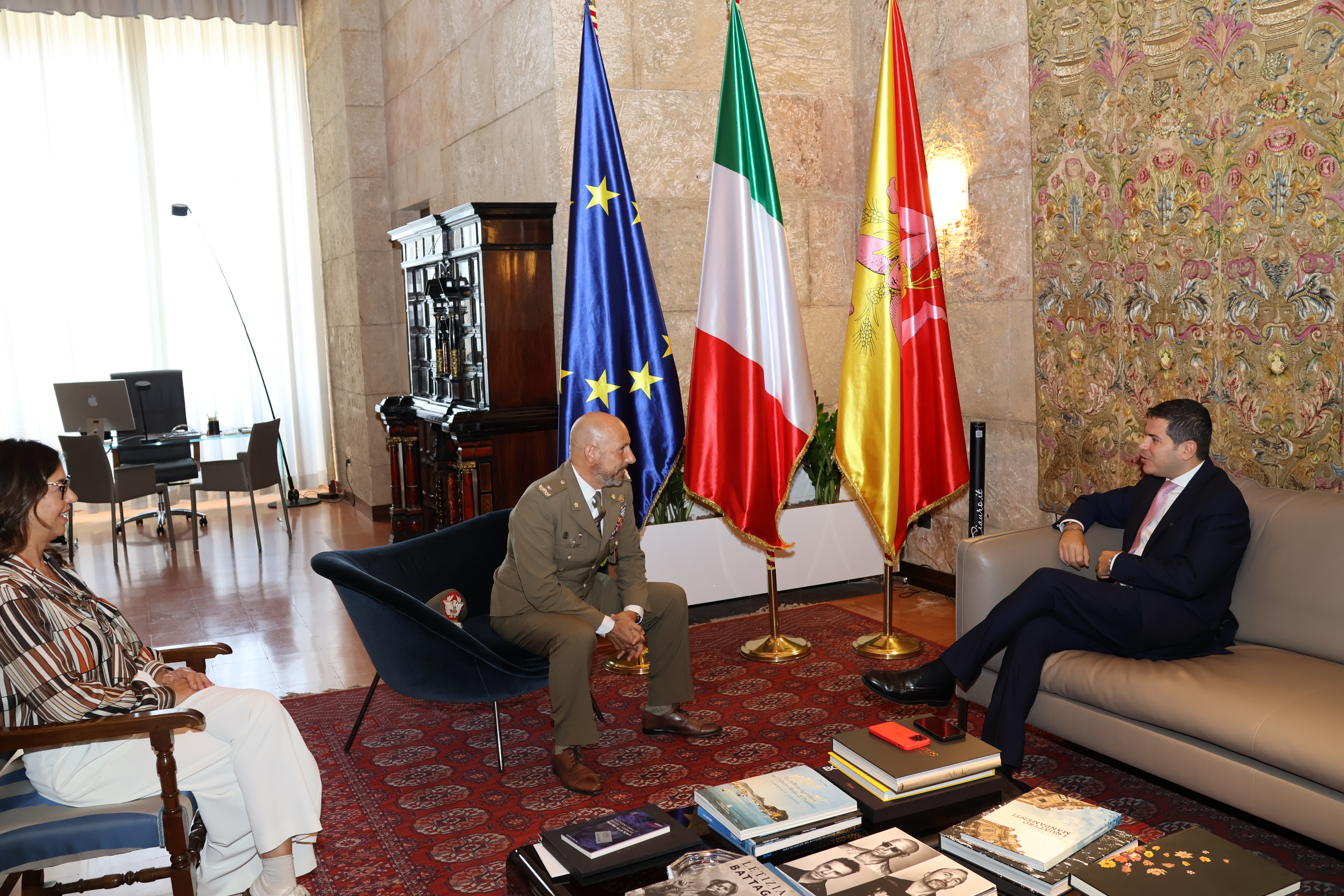Il Presidente dell’Ars Gaetano Galvagno ha ricevuto il neo Comandante Militare dell’Esercito in Sicilia, Generale di Brigata Francesco Principe. Insieme al Presidente, in Torre Pisana, erano presenti il Segretario Generale, Fabrizio Scimè, il Capo di Gabinetto, Filippo Palmeri ed il Direttore del Servizio del Cerimoniale, Patrizia Perino.