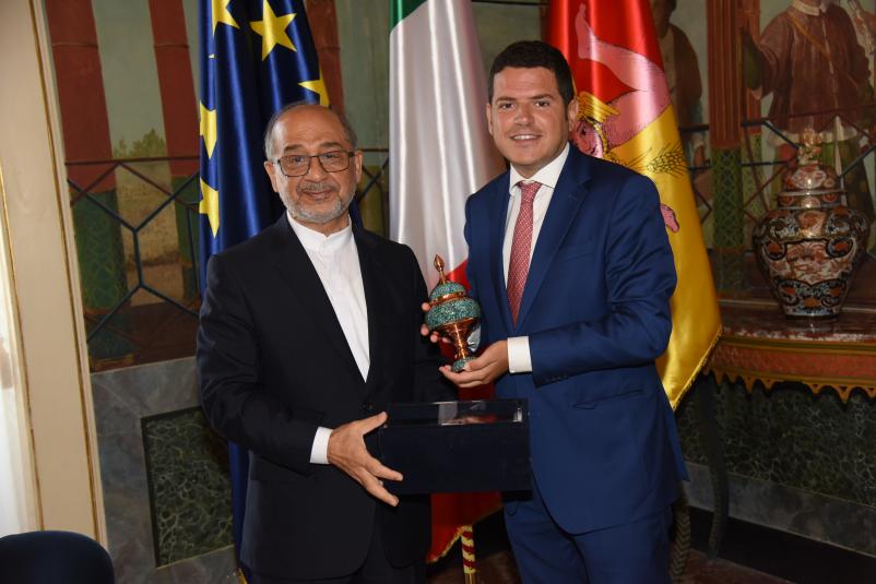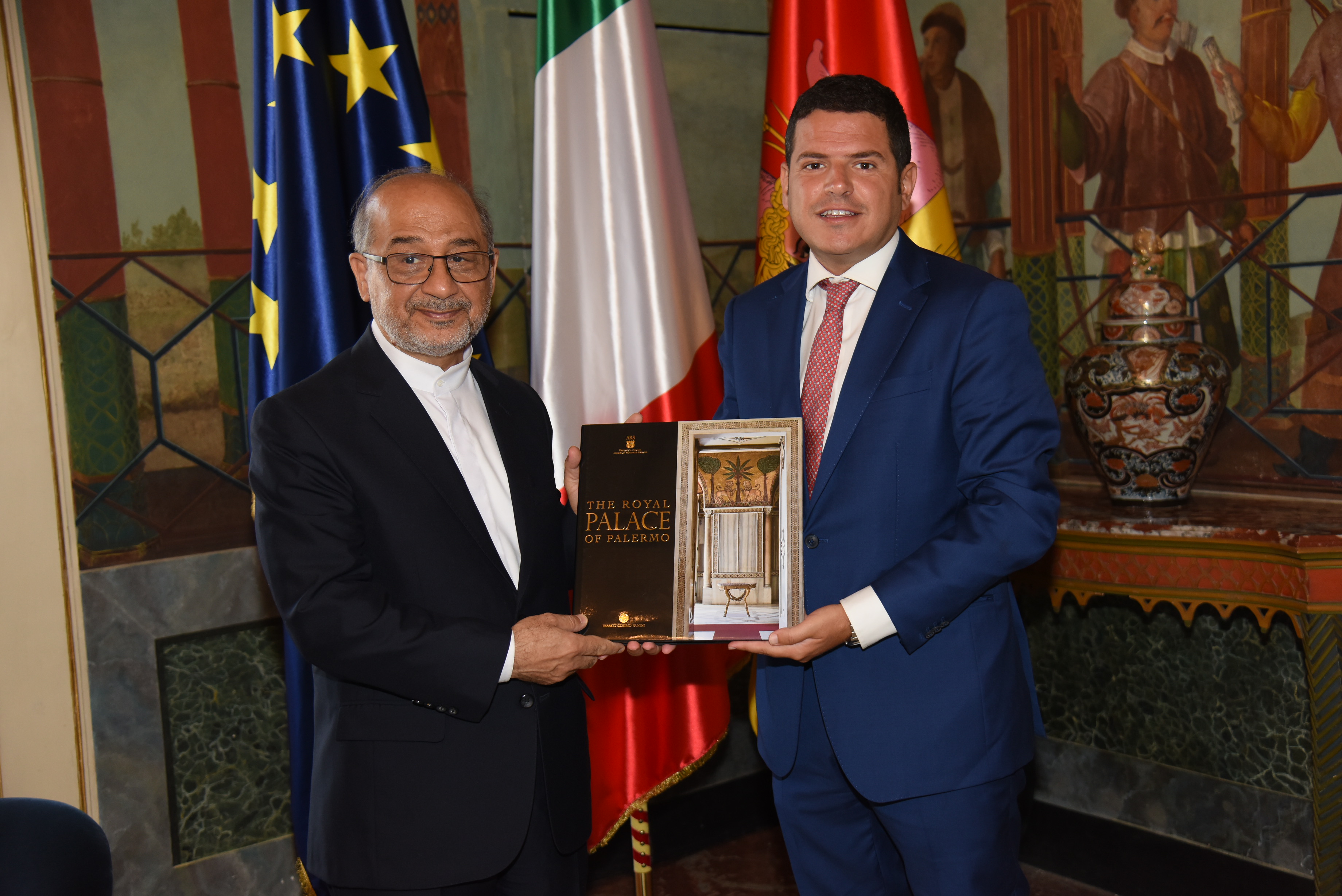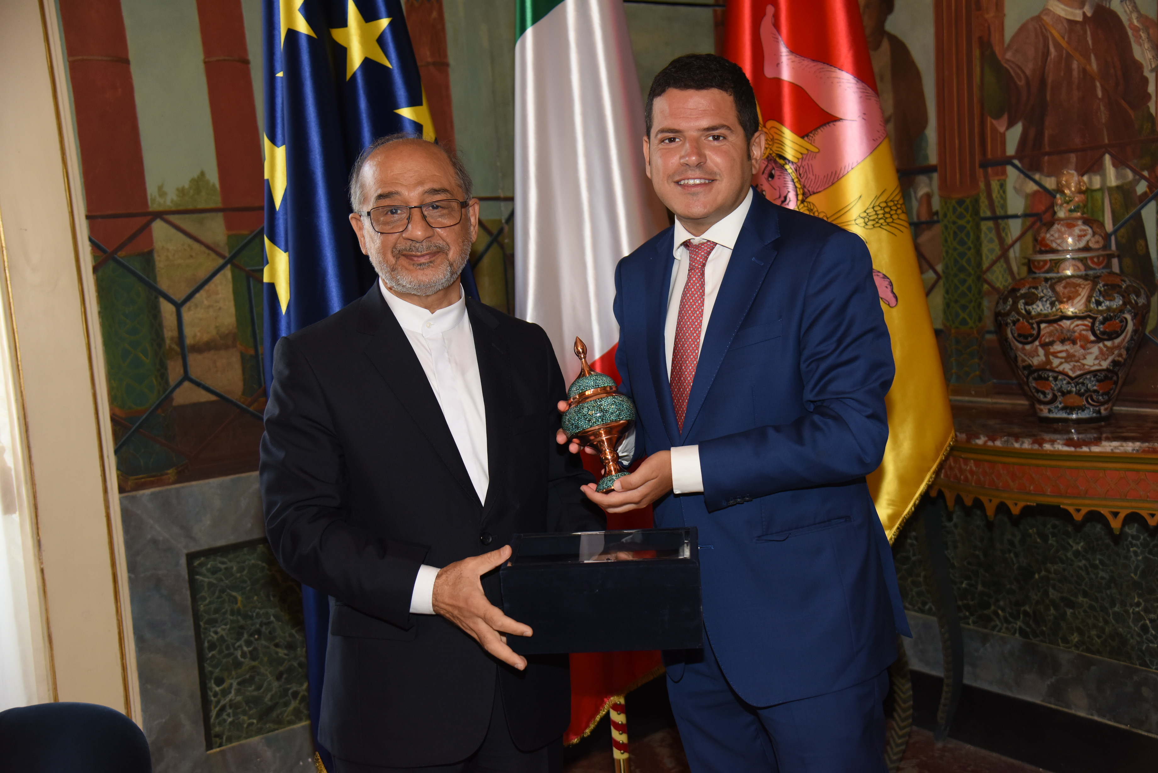 Visita a Palazzo dei Normanni dell'Ambasciatore della Repubblica Islamica dell'Iran, Mohammad Reza Sabouri. Il Presidente dell’Ars Gaetano Galvagno ha ricevuto nella Sala Cinese, Mohammad Reza Sabouri che per l’occasione era accompagnato dal funzionario d’Ambasciata, Mr Aham Ghalandari e dal Consulente economico, Mr Hamid Reza Rasouli.