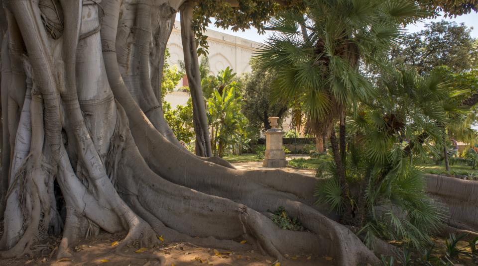 All’interno del Bastione di San Pietro, parte del progetto di riorganizzazione difensiva della città di Palermo del 1560 affidato all’architetto Antonio Ferramolino, si trovano i giardini del Palazzo Reale. L’attuale giardino è composto da aiuole dai bordi curvilinei e da varie specie arboree di origine subtropicale. All’interno spiccano tre Ficus macrophylla, uno dei quali abbraccia un grande Pinus pinea.