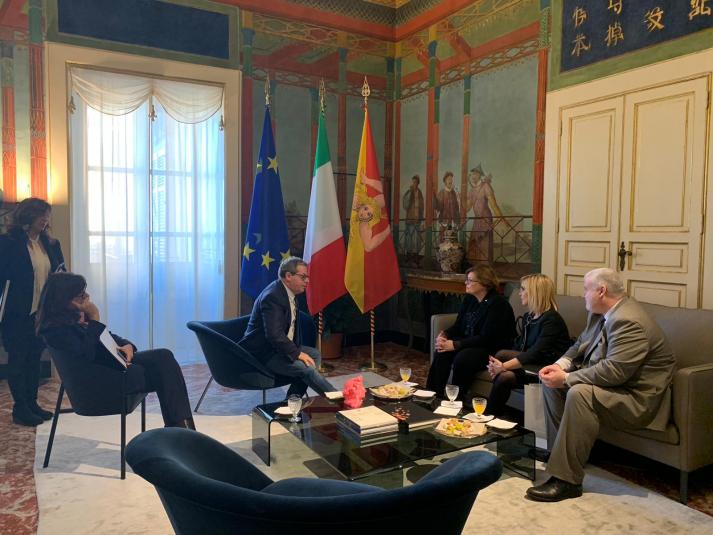 Il console si è intrattenuto per un breve e informale incontro durante il quale sono stati toccati alcuni importanti temi: dalla storica amicizia tra Stati Uniti e Sicilia agli investimenti commerciali in Italia e in Europa.