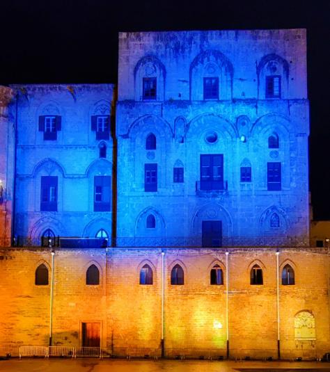 In segno di vicinanza, solidarietà e sostegno, il Palazzo è stato illuminato di giallo e blu, colori della bandiera della Repubblica Ucraina.