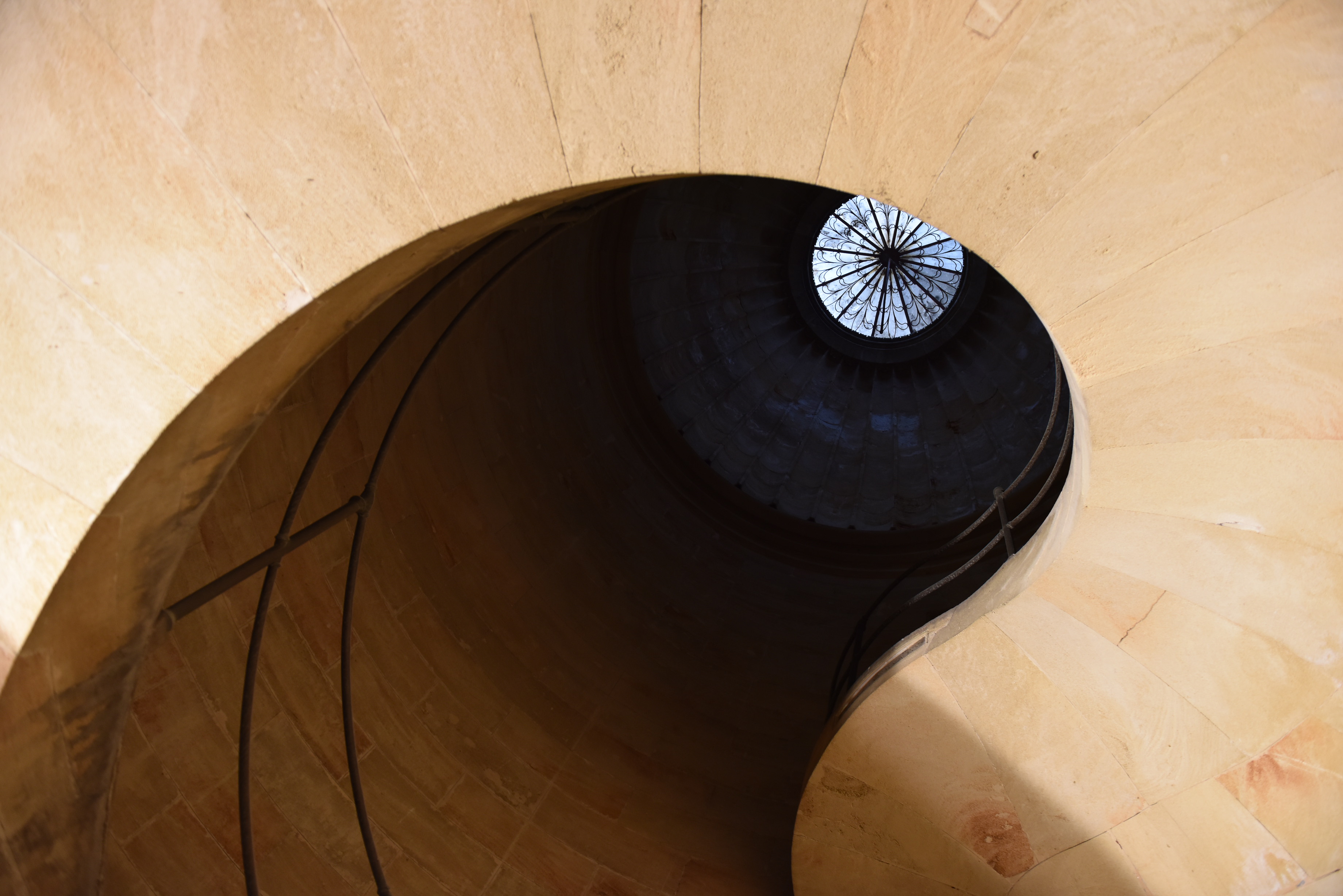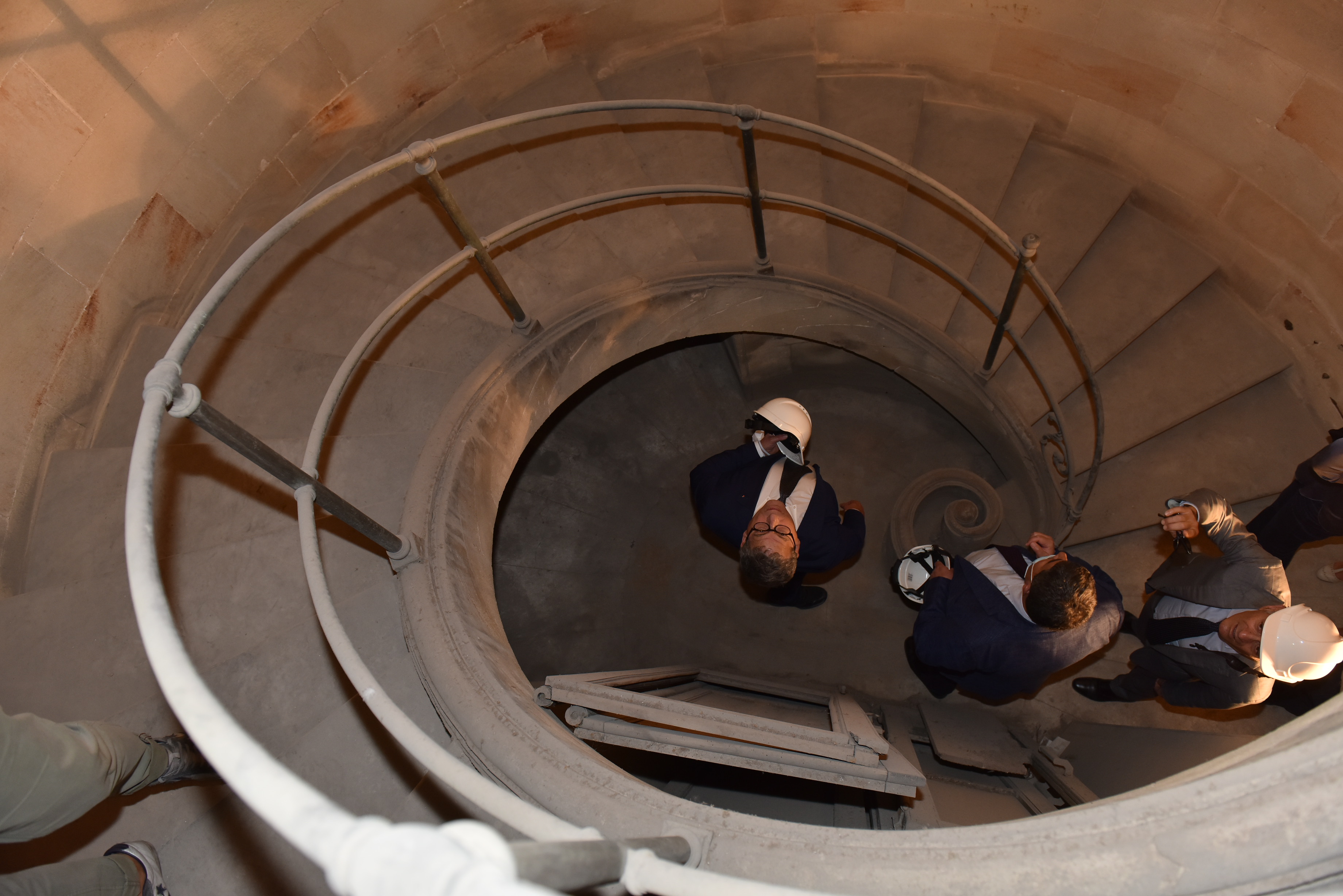 La scala, interamente a sbalzo, si snoda concentricamente all'interno d’un alto tamburo su cui si imposta una cupola sferica. La cupola si conclude con un occhio circolare coperto da un lucernario in ferro e vetro . Dal 1819 al 1860 il palazzo ospitò anche l’Ufficio dell’Intendente, figura affine all'attuale Prefetto e, inoltre, la sede della Camera consultiva di Commercio di Palermo.